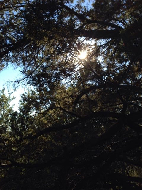 Toward the end of the hike, the sun was getting lower in the sky and started to shine through the trees and cast interesting light and shadow so I tried to capture that. First, I noticed the sun peeking through the trees so I thought that might make an interesting shot. I managed to get the sun, but it didn’t turn out that special.